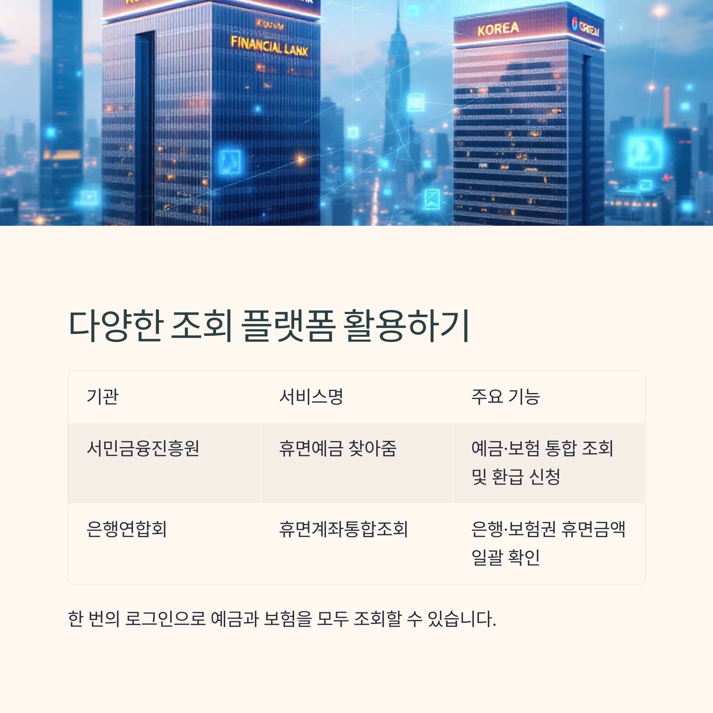| 은행연합회 | 휴면계좌통합조회 (클릭하여 바로가기) | 은행·보험권 휴면금액 일괄 확인 |