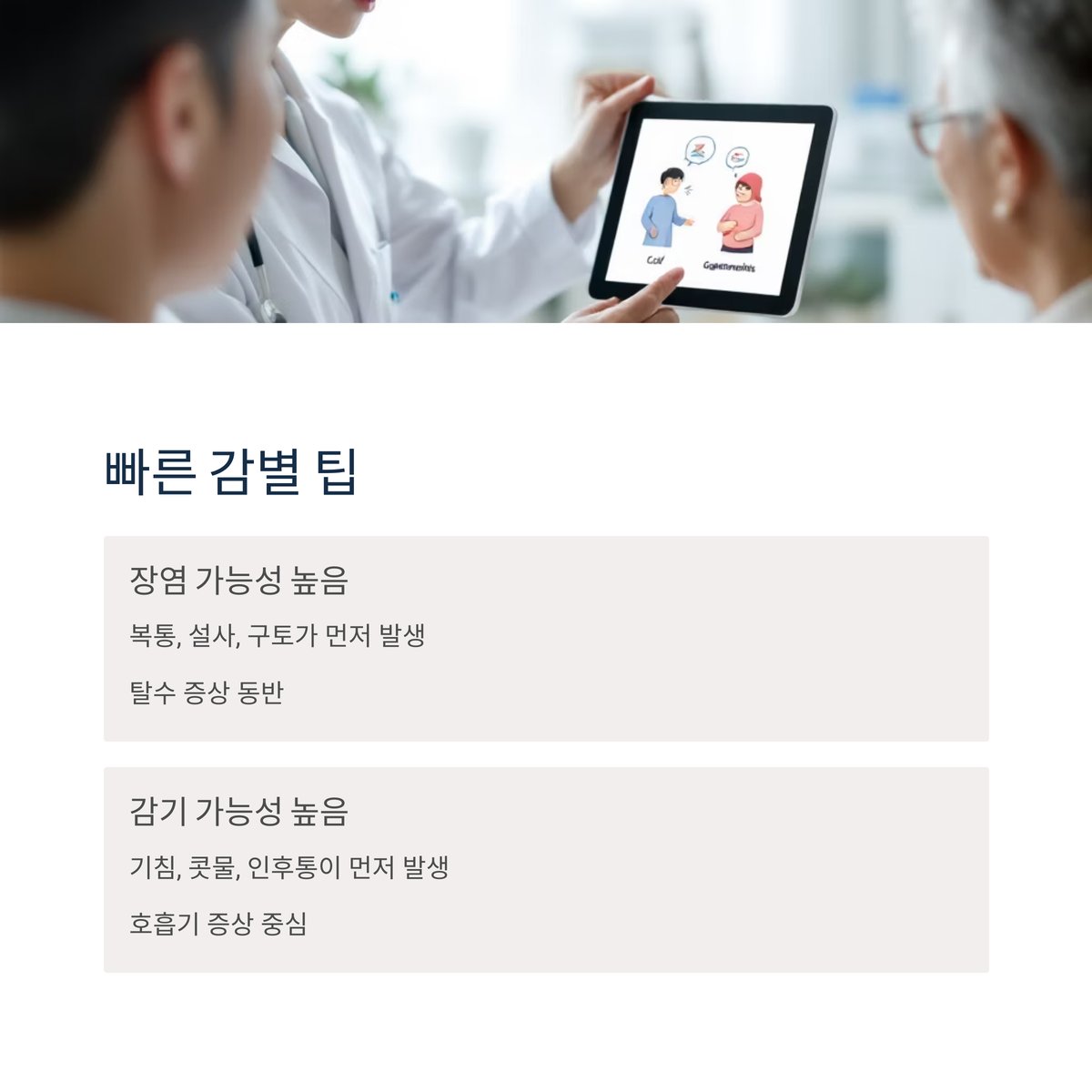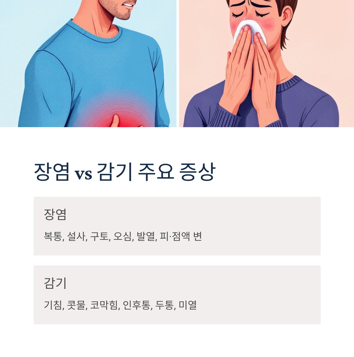 장염 vs 감기 증상 비교