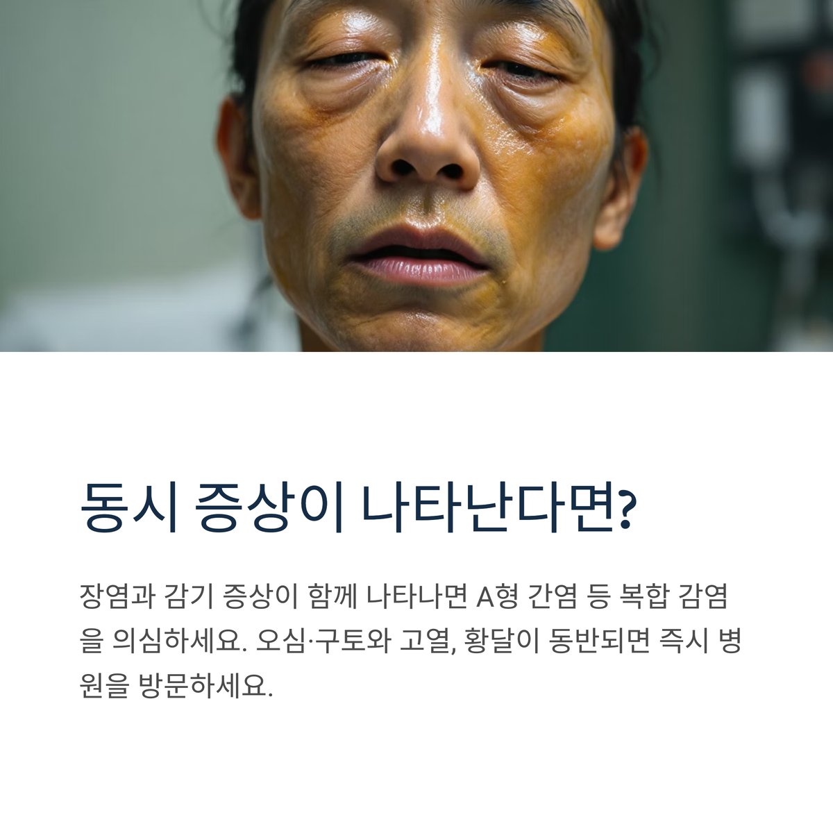 장염과 감기 증상이 동시에 나타나는 경우, A형 간염 등 복합 감염을 의심해야 합니다. 특히 오심·구토와 함께 고열, 황달 등이 동반되면 즉시 병원을 방문하세요.