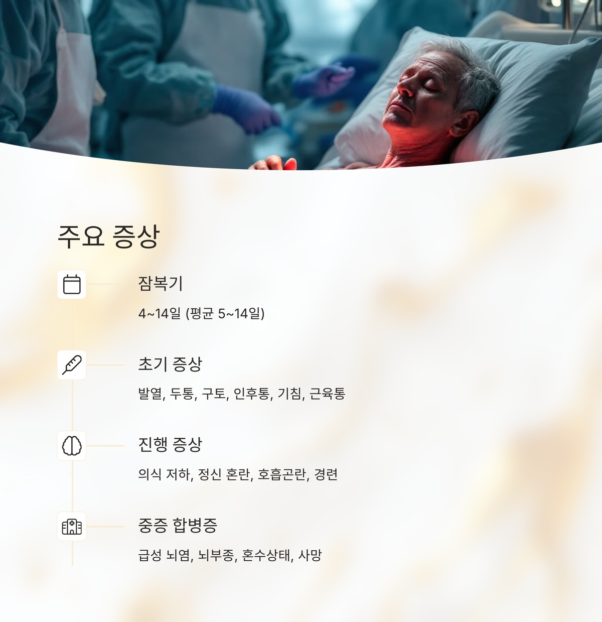3~14일, 신경계 침범 시 빠르게 악화
