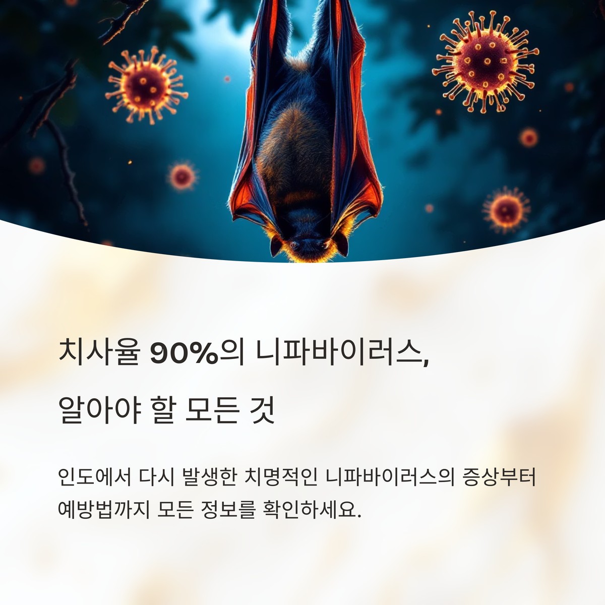 니파바이러스는 인수공통 바이러스로 발열, 두통 등 초기 감기 증상부터 뇌염, 사망까지 빠르게 악화될 수 있는 치명적인 감염병입니다.