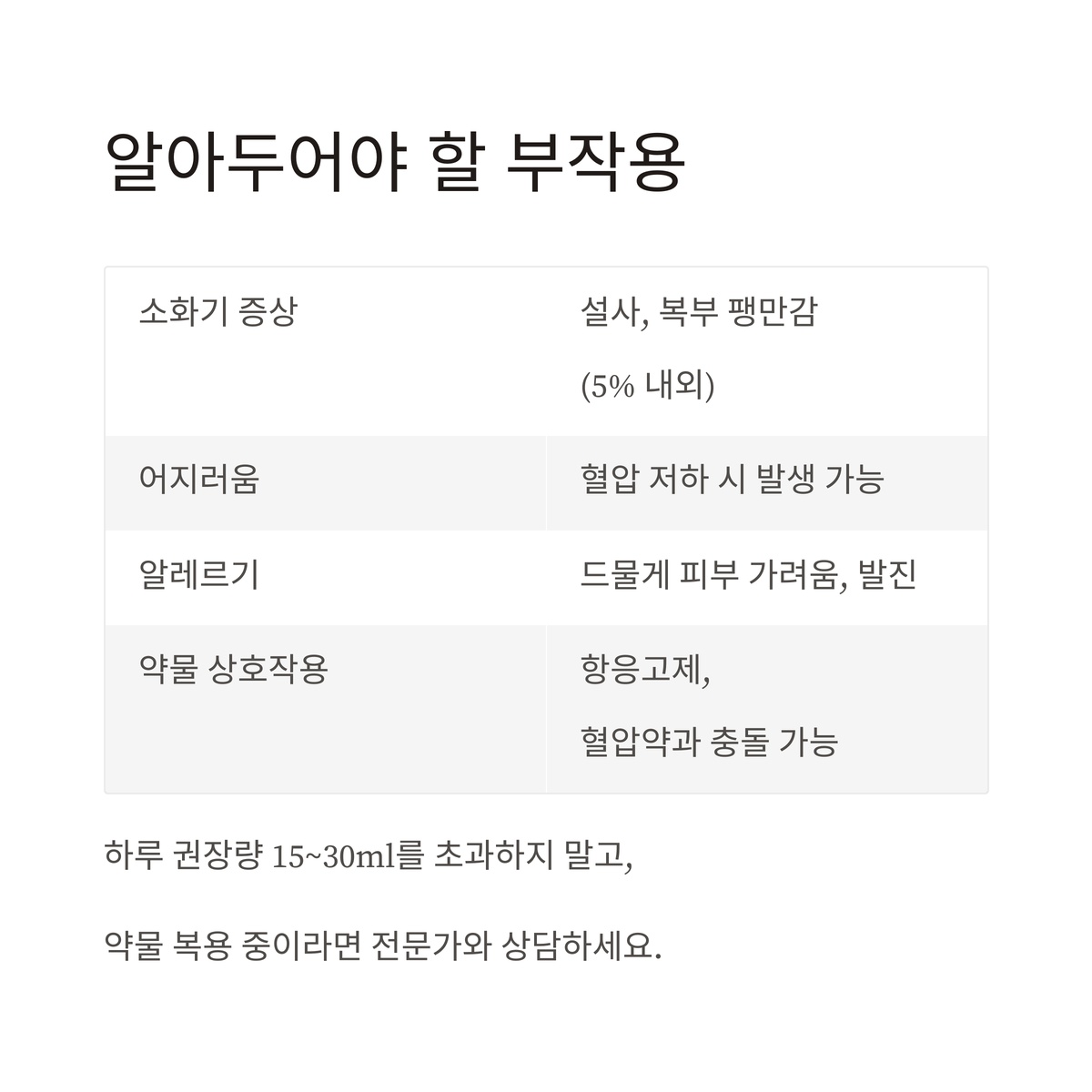 다만 과다 섭취나 특정 질환 보유자는 반드시 주의해야 하며, 초기에는 소량 섭취로 체내 반응을 확인한 후 점차 늘리는 방식이 안전합니다.