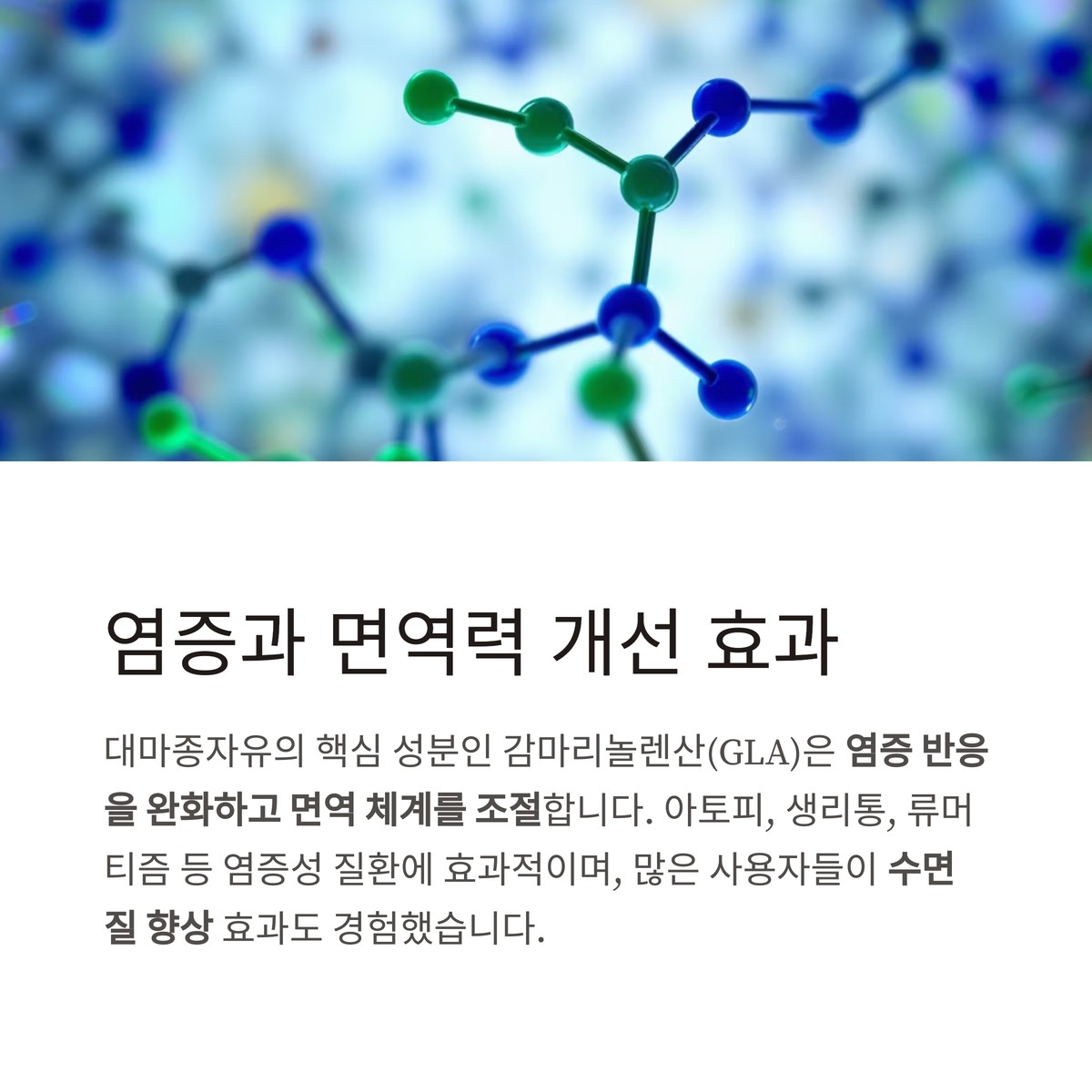 대마종자유의 핵심 성분 중 하나인 GLA는 염증 반응을 완화하고 면역 체계를 조절하는 역할을 합니다.