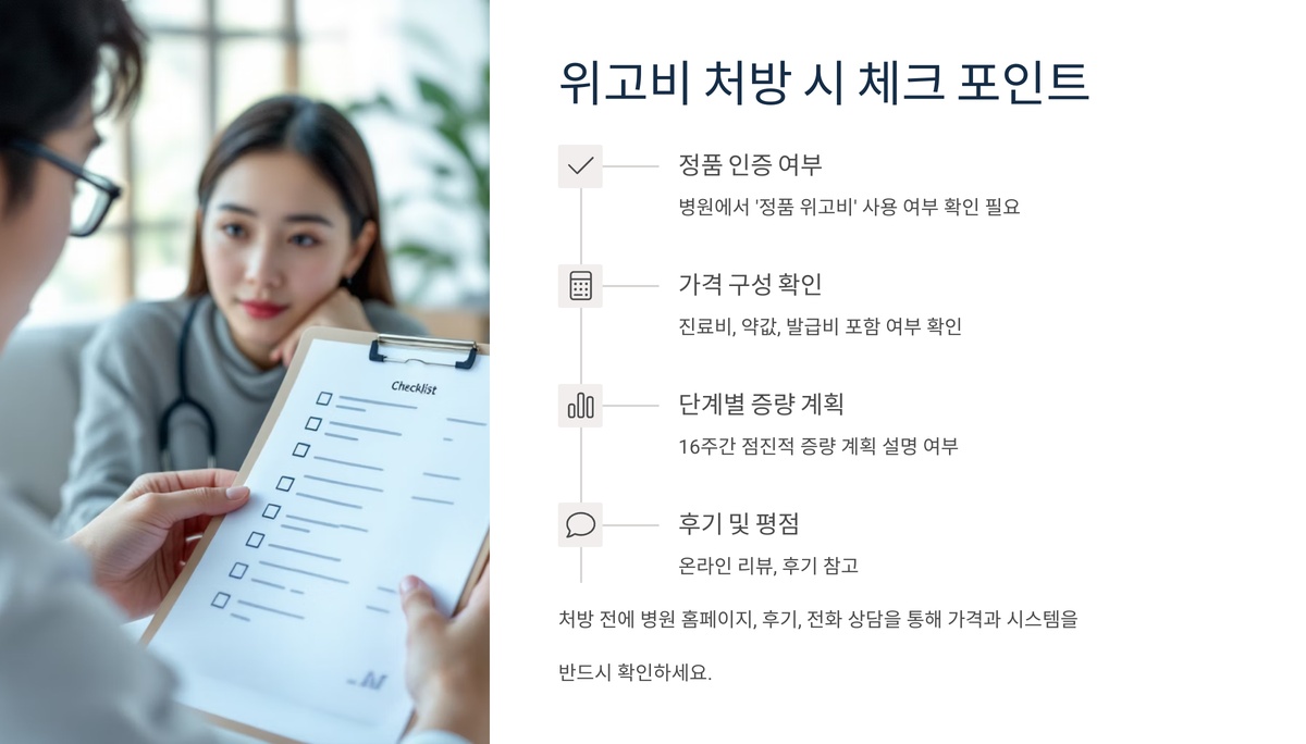 | 정품 인증 여부 | 병원에서 '정품 위고비' 사용 여부 확인 필요 |