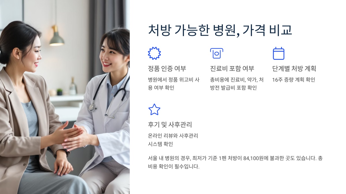 핵심: "처방 전에 병원 홈페이지, 후기, 전화 상담을 통해 가격과 시스템을 반드시 확인하세요."