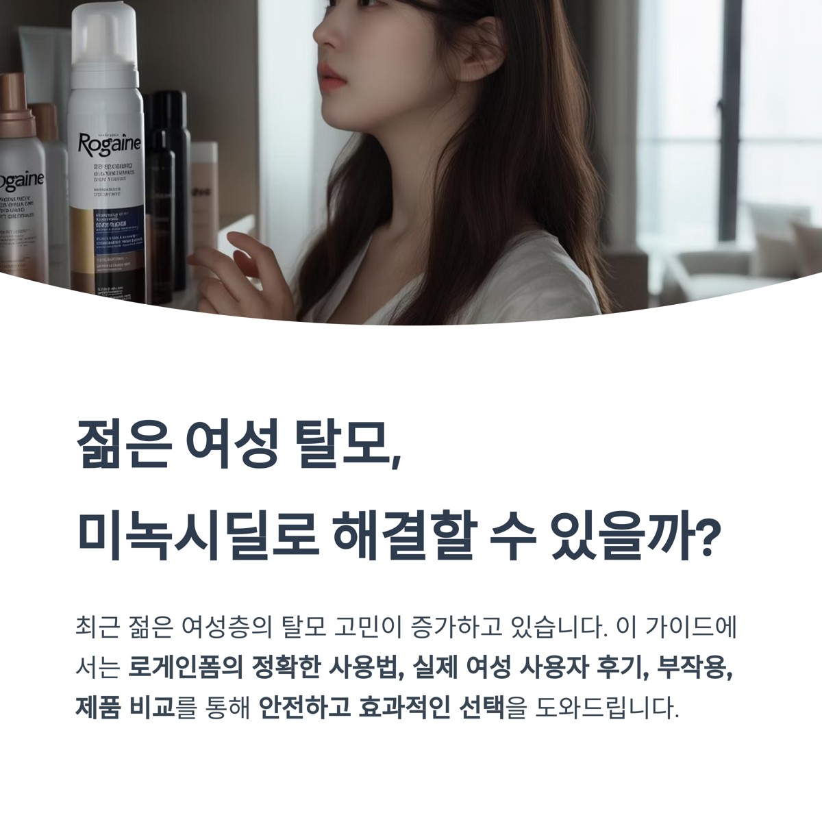 최근 젊은 여성층의 탈모 고민이 증가하면서, 미녹시딜 폼 형태 제품인 로게인폼과 커클랜드폼의 사용법과 효과에 대한 관심이 높아지고 있습니다. 본 글에서는 로게인폼의 정확한 사용법, 실제 여성 사용자 후기, 부작용, 제품 비교를 통해 보다 안전하고 효과적인 선택을 돕기 위한 정보를 제공합니다.
