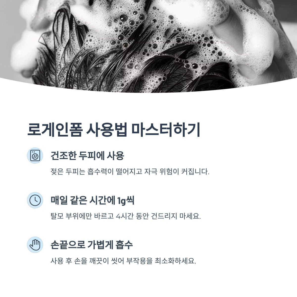 로게인폼을 사용할 때는 반드시 두피가 마른 상태에서 시작해야 합니다.