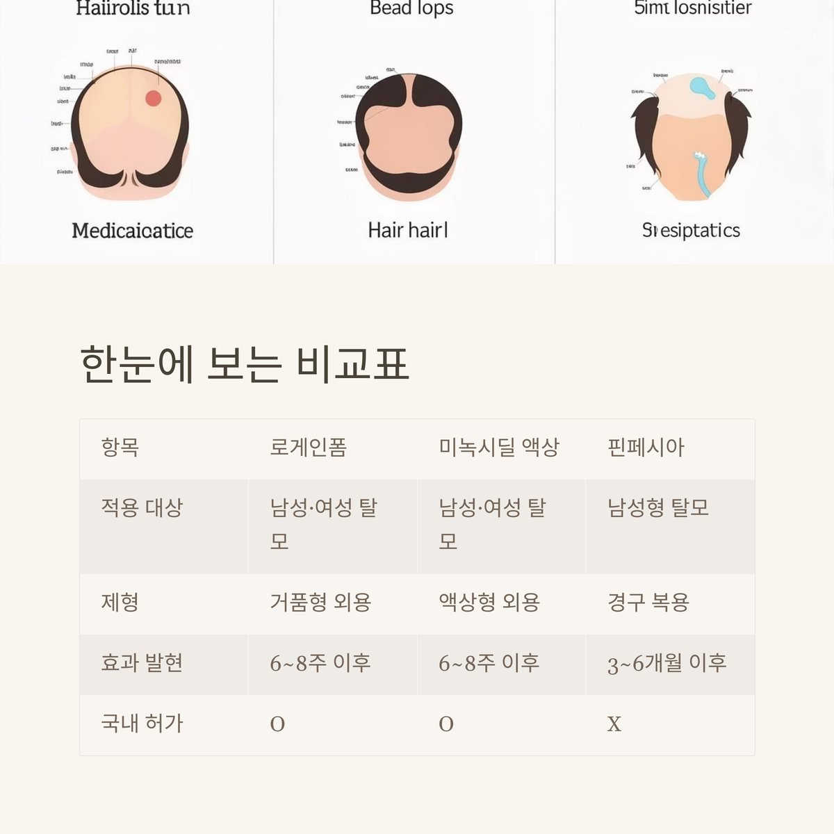 탈모약 추천: 로게인폼 vs 미녹시딜 vs 핀페시아 비교 리뷰