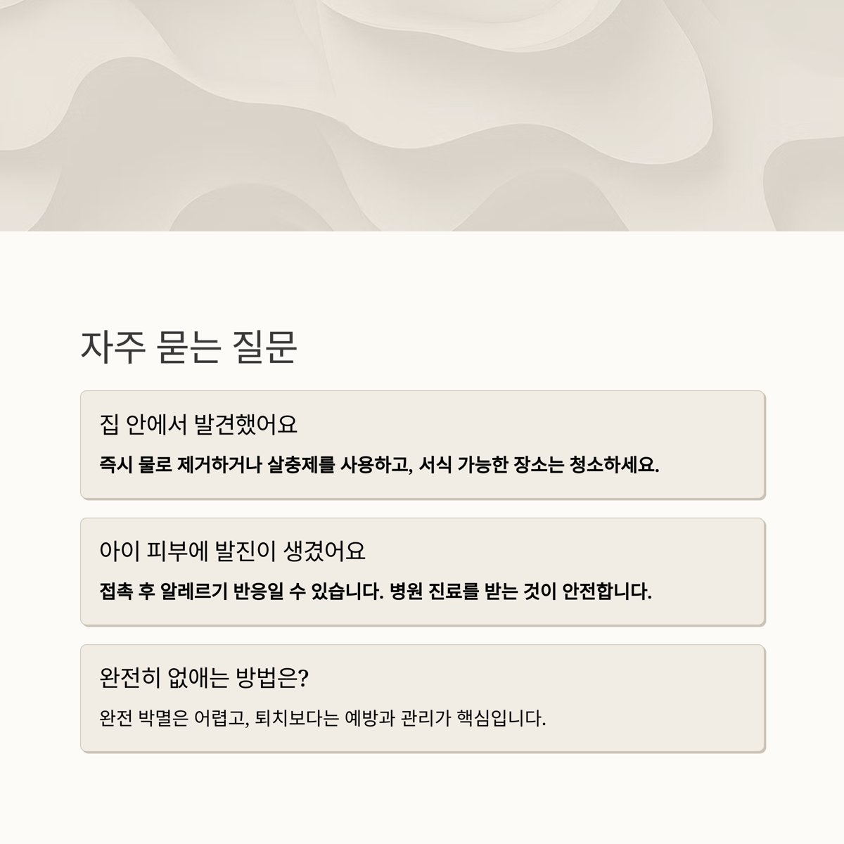 → 완전 박멸은 어렵고, 퇴치보다는 예방과 관리가 핵심입니다.