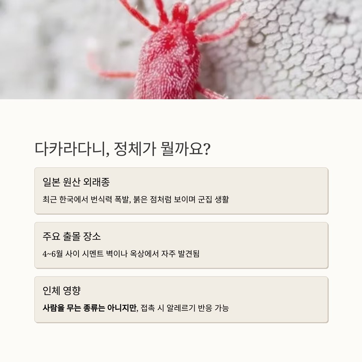 다카라다니(빨간진드기), 도대체 뭐길래 여름마다 나타날까?