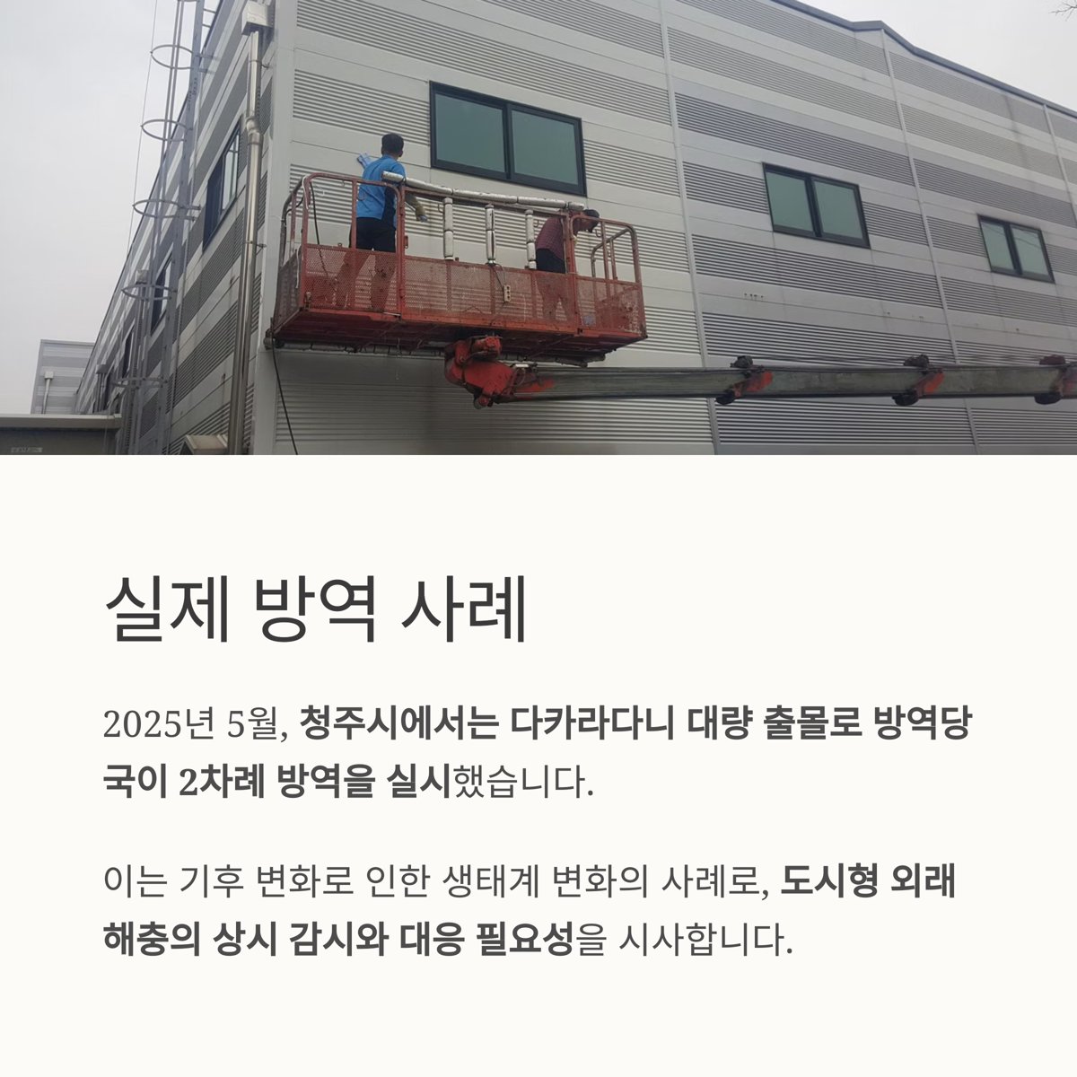 이는 기후 변화로 인한 생태계 변화의 사례로, 도시형 외래 해충의 상시 감시와 대응 필요성을 시사합니다.