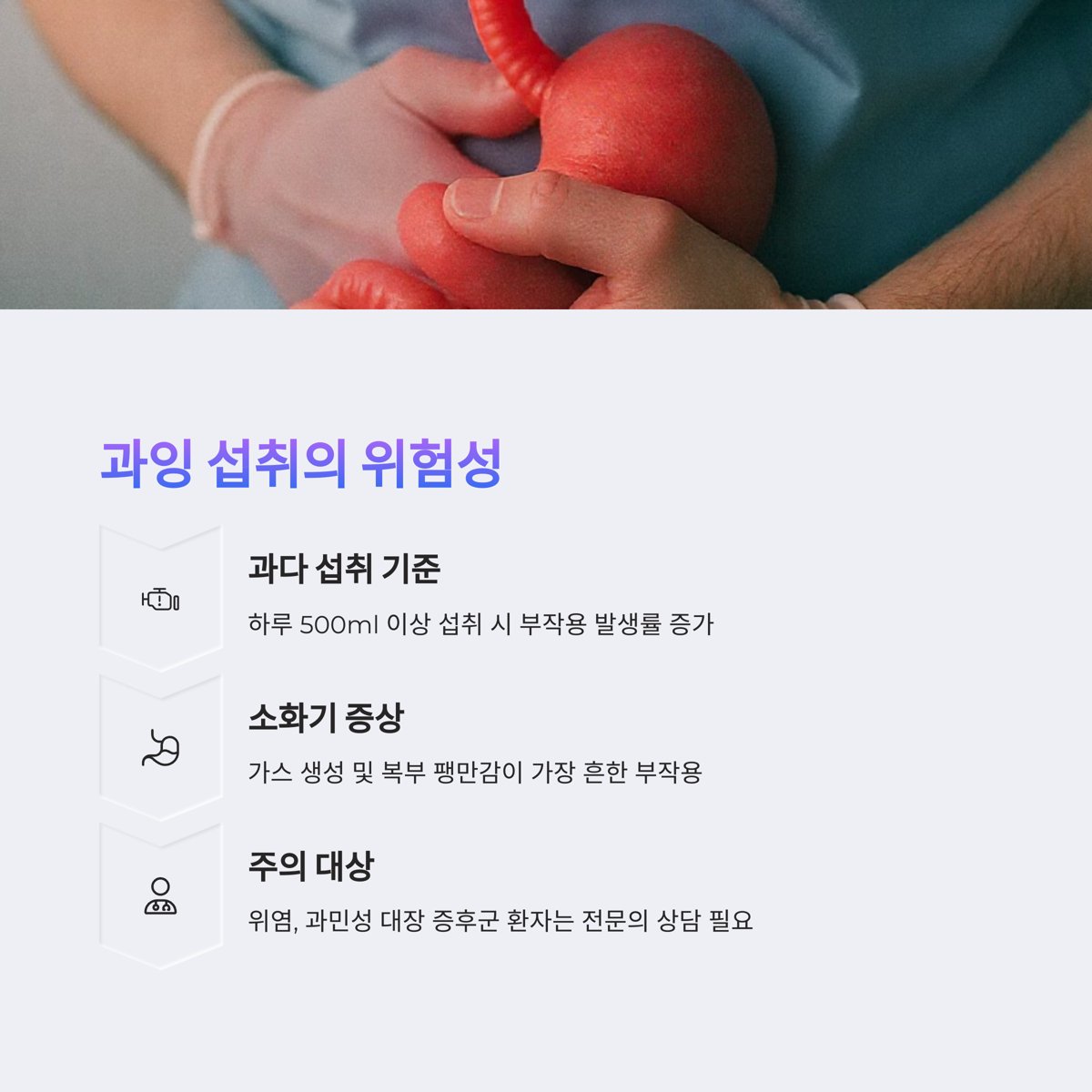 공복에 섭취할 경우 위점막을 자극하여 위산 역류 및 복통을 유발할 수 있습니다