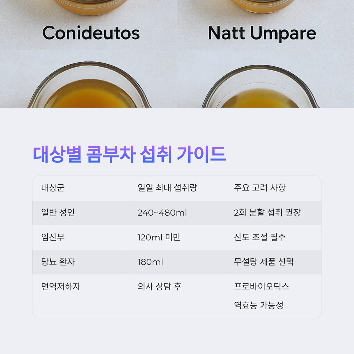 또한 위염, 과민성 대장 증후군 환자는 콤부차 섭취 전 전문의 상담이 필요합니다