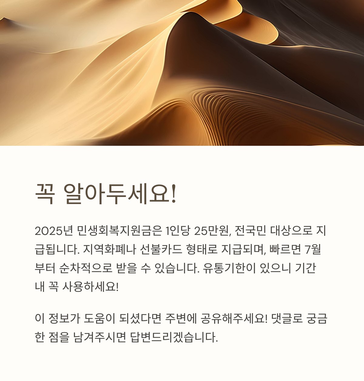 2025.06.11 - [생활정보] - 2025년 전국민 민생회복지원금 25만원 지원금, 정부 공식 발표 정리