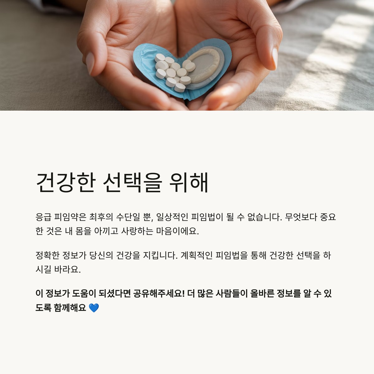 응급 피임약은 최후의 수단일 뿐, 결코 일상적인 피임법이 될 수 없습니다. 무엇보다 중요한 것은 내 몸을 아끼고 사랑하는 마음이겠죠. 더 궁금한 점이 있다면 댓글로 남겨주세요. 아는 선에서 최대한 도와드릴게요!