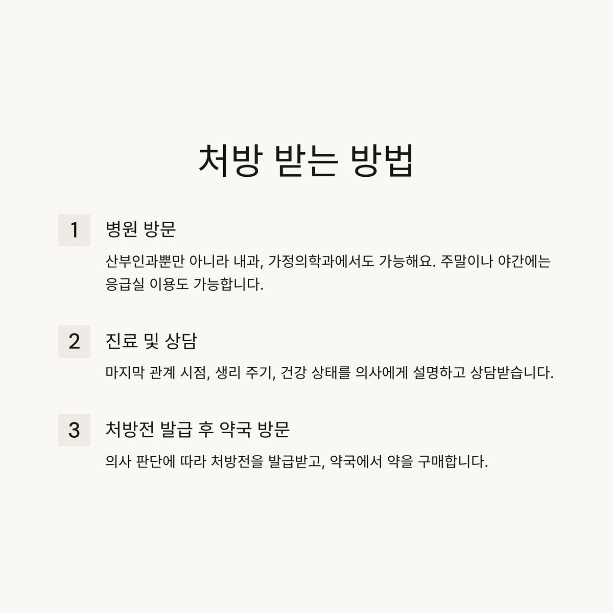 가장 중요한 점은, 이 약이 여성의 건강에 미치는 영향을 고려해 반드시 의사의 전문적인 진단과 처방이 필요한 전문의약품이라는 사실이에요. 약국에서 바로 살 수 없습니다.