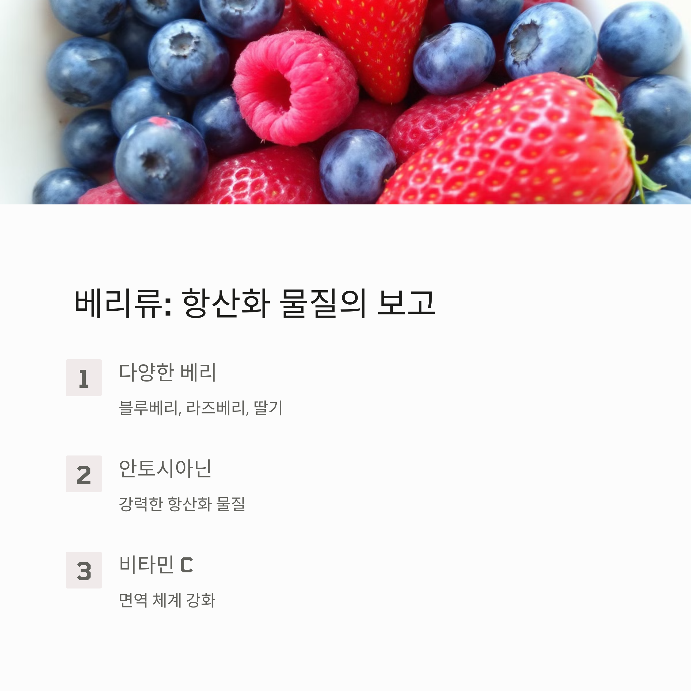 | 베리 종류 | 주요 항산화 성분 | 효과 |