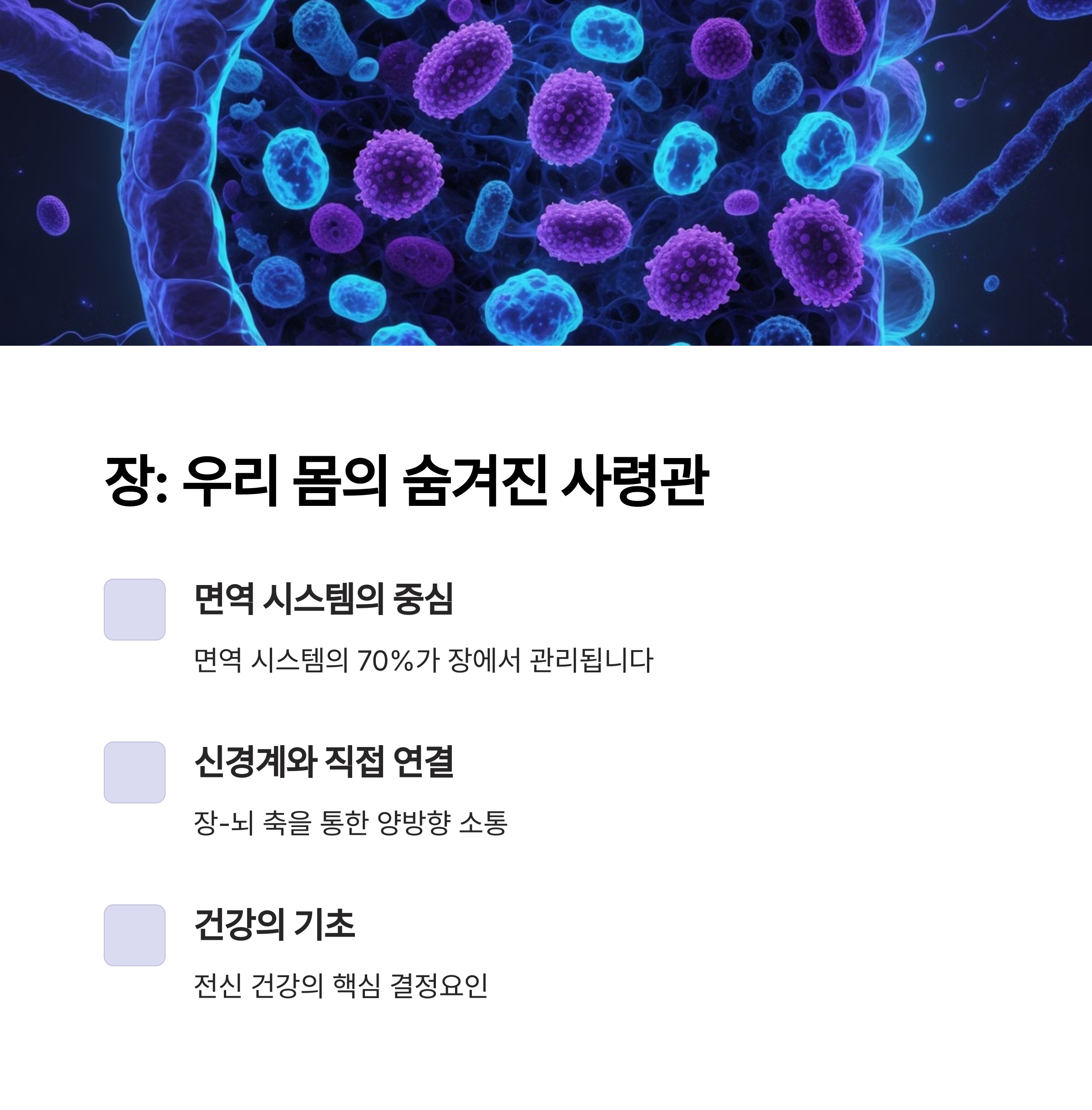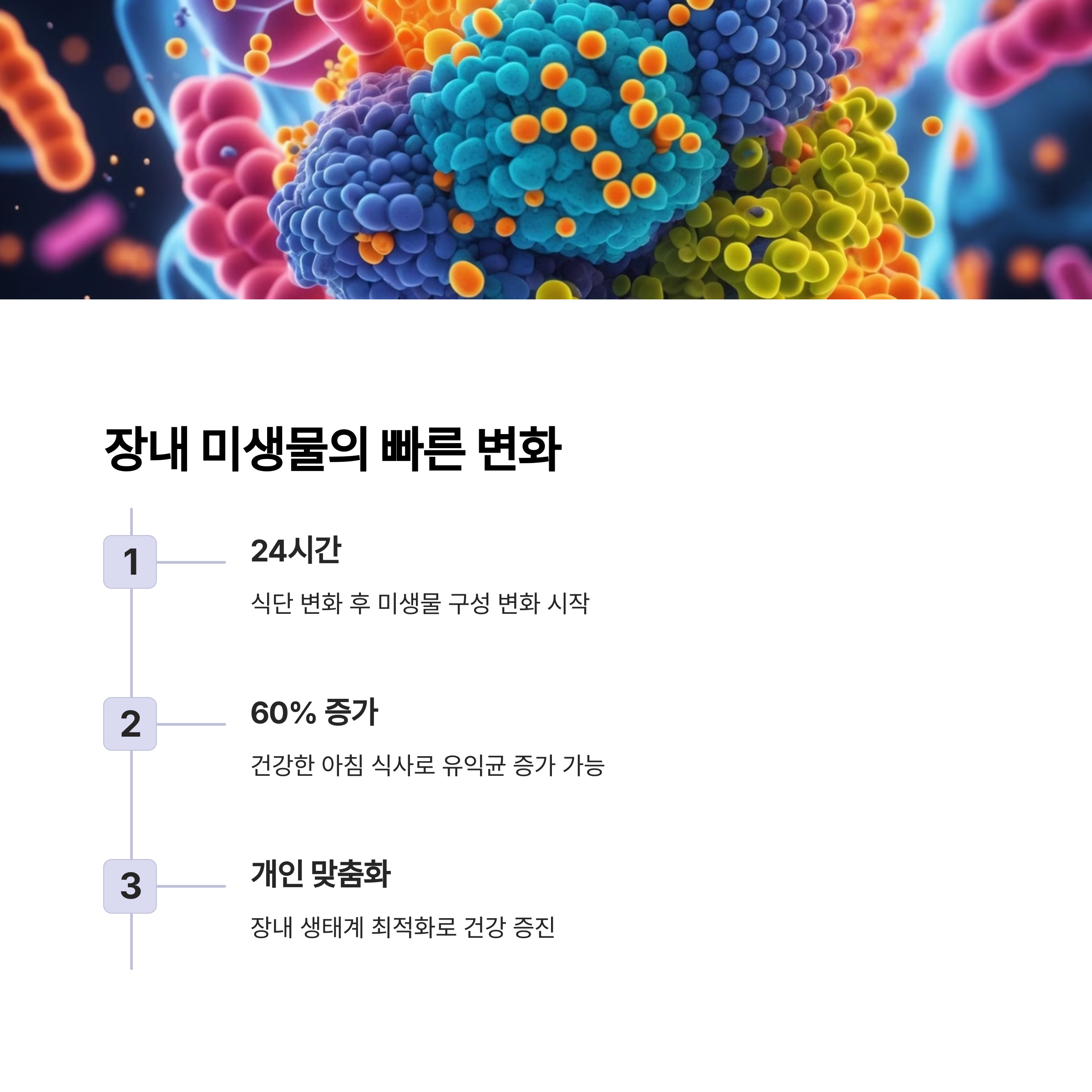 | 장 건강의 핵심 | 아침 식사는 장내 유익균을 활성화하는 열쇠입니다. |