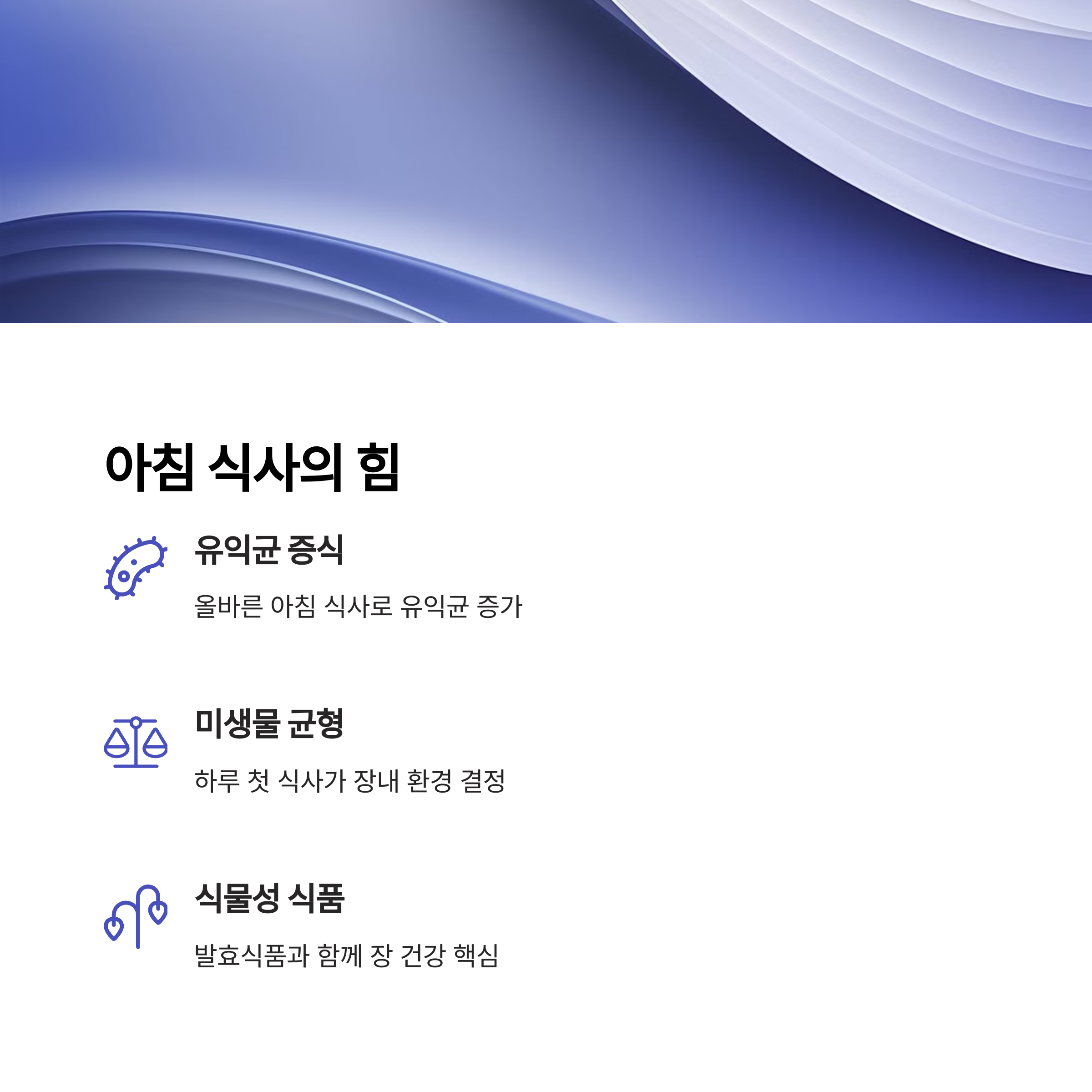 | 아침식사 중요성 | 장내 환경 개선 | 발효식품 효과 |