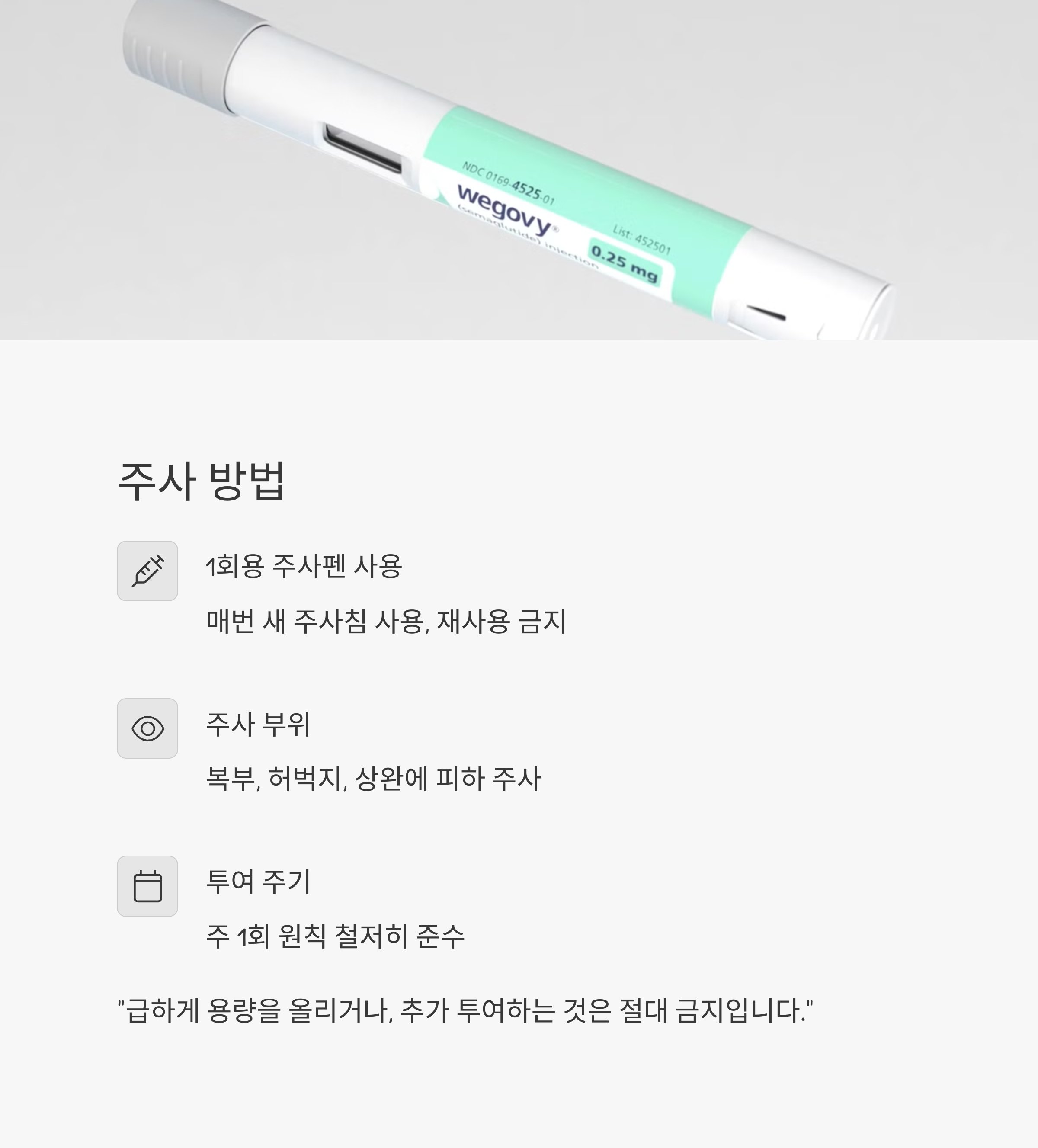 | 1~4주차 | 주 1회 0.25mg |