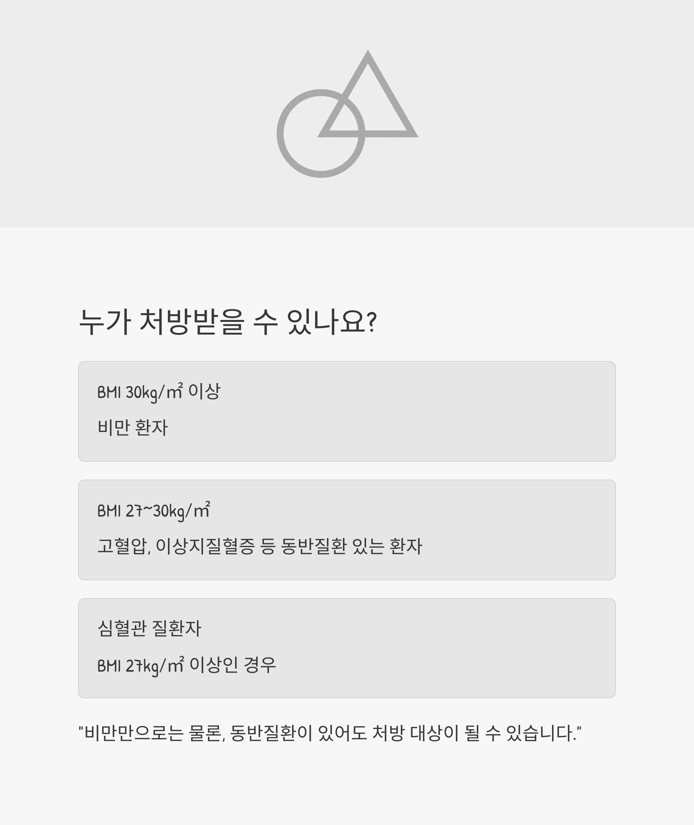| 처방 대상 | BMI 30 이상 또는 27 이상+동반질환 |