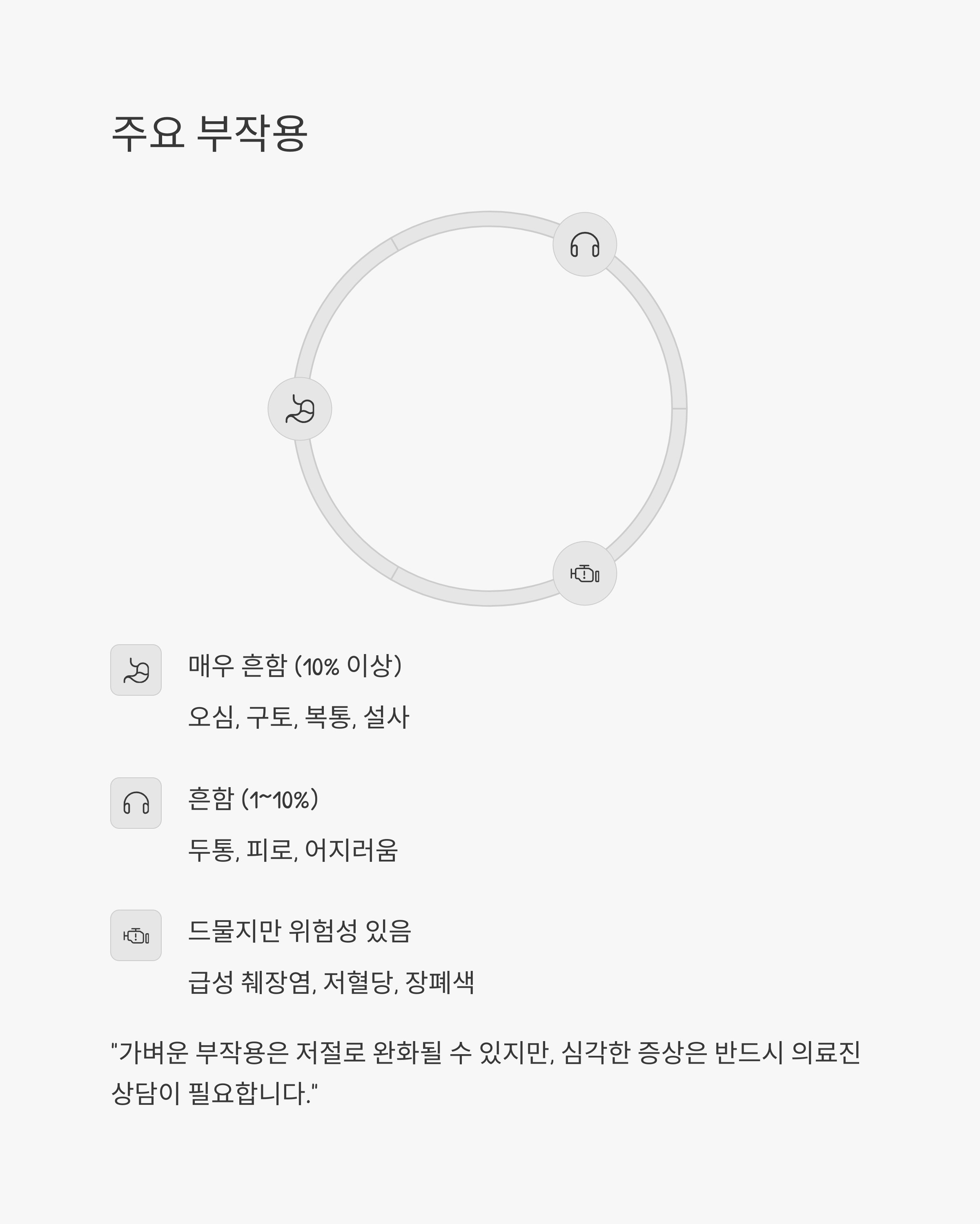 "가벼운 부작용은 저절로 완화될 수 있지만, 심각한 증상은 반드시 의료진 상담이 필요합니다."