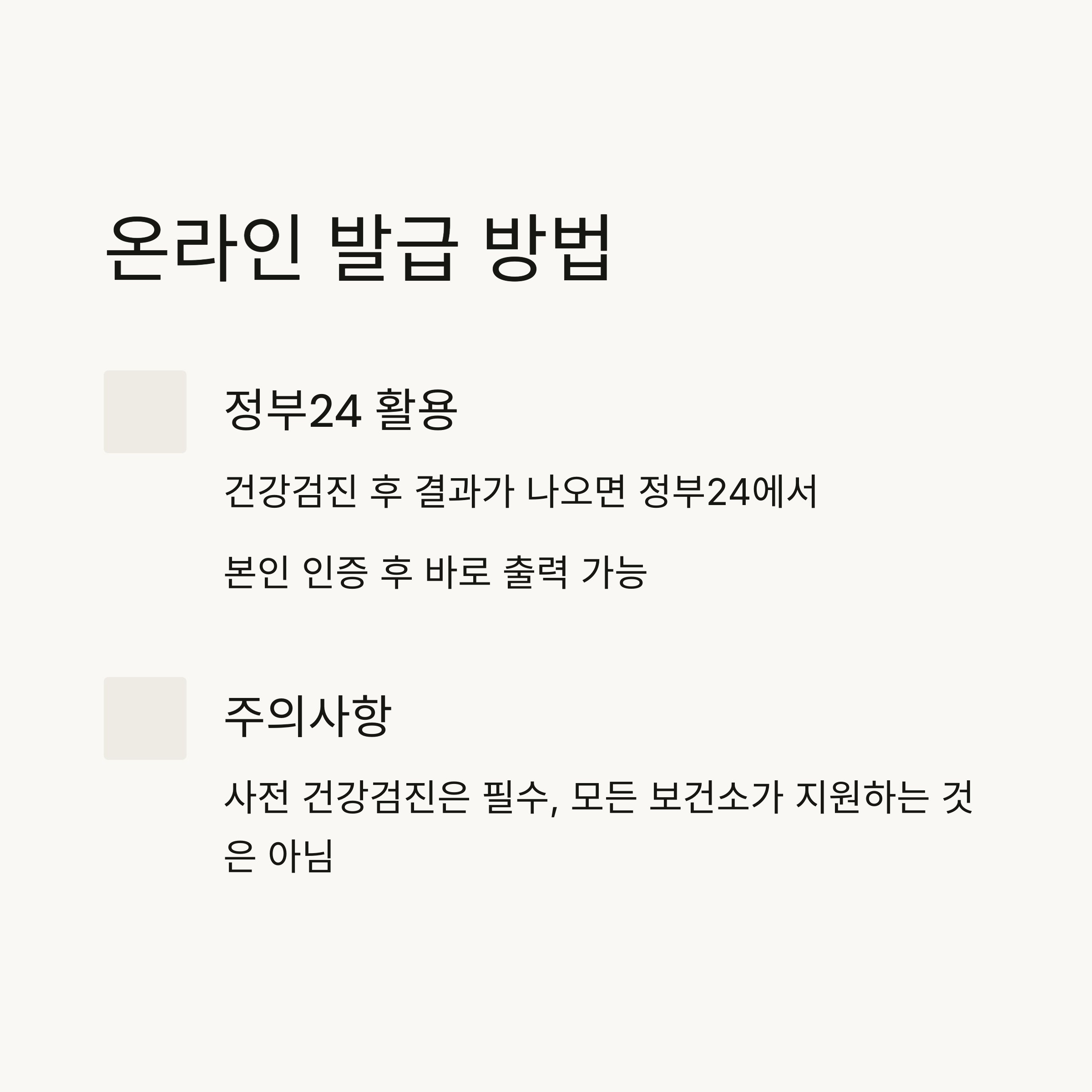 | 온라인 발급 가능 여부 | 일부 보건소만 가능 |