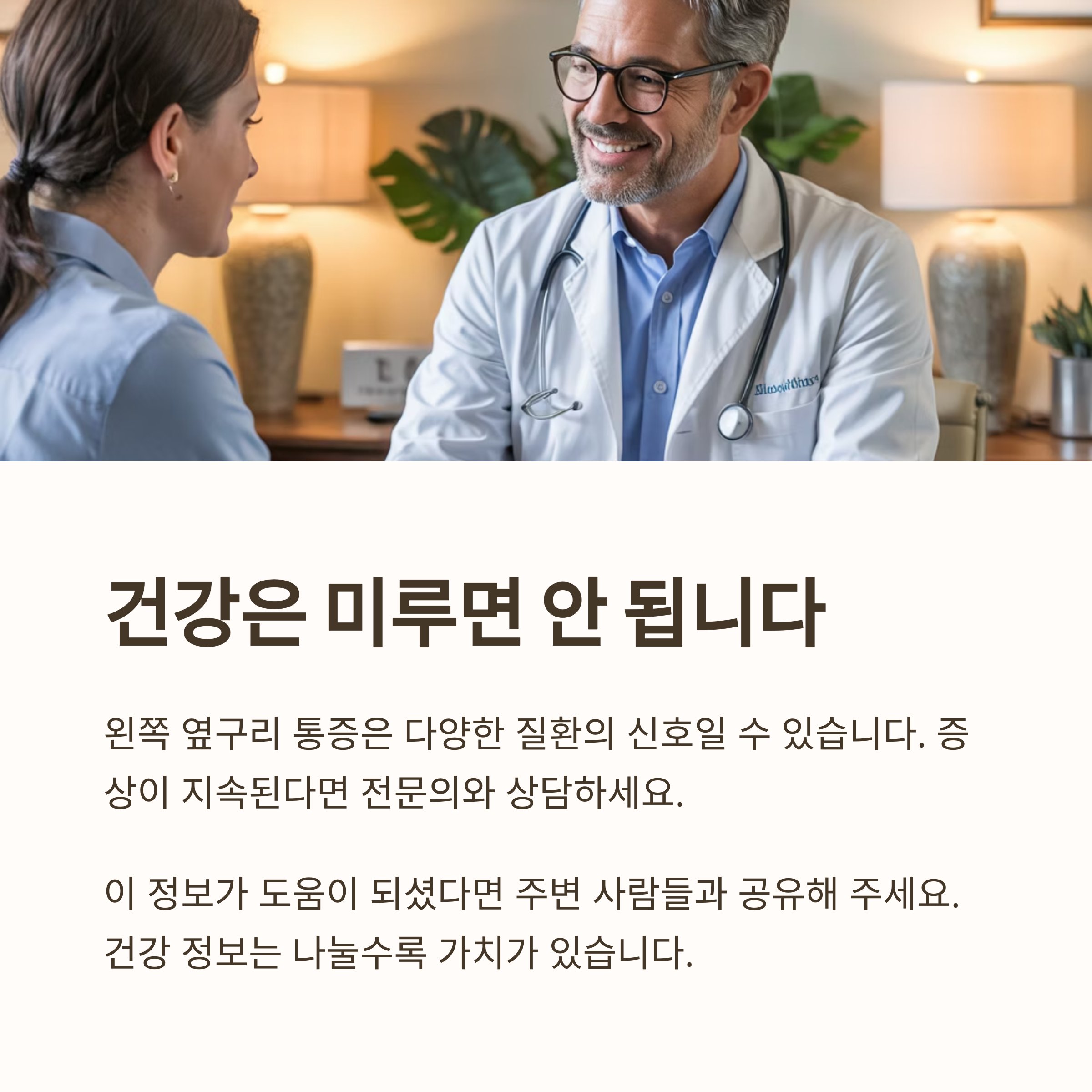 - 심장질환: 왼쪽 통증이 지속되며 식은땀, 어지럼증이 동반된다면 응급상황일 수 있음