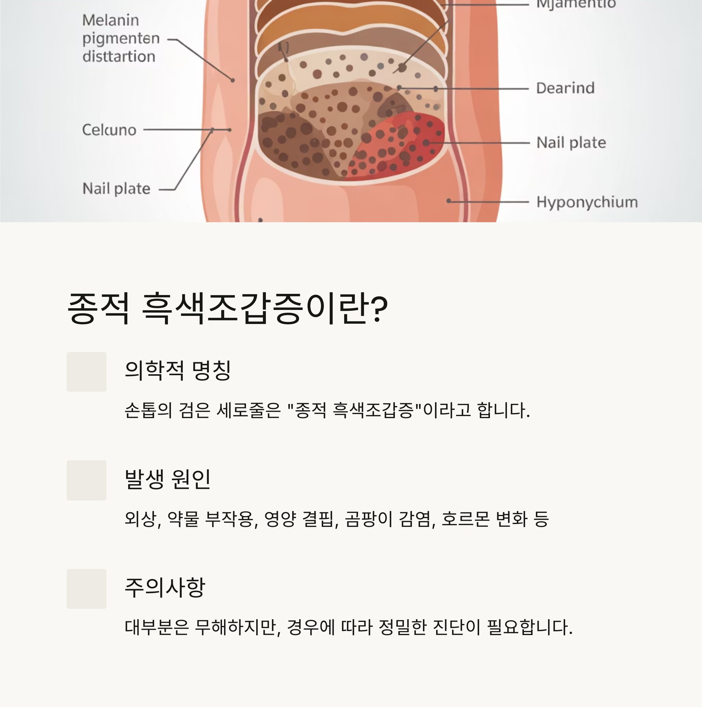 표: 손톱 검은세로줄 주요 원인 요약