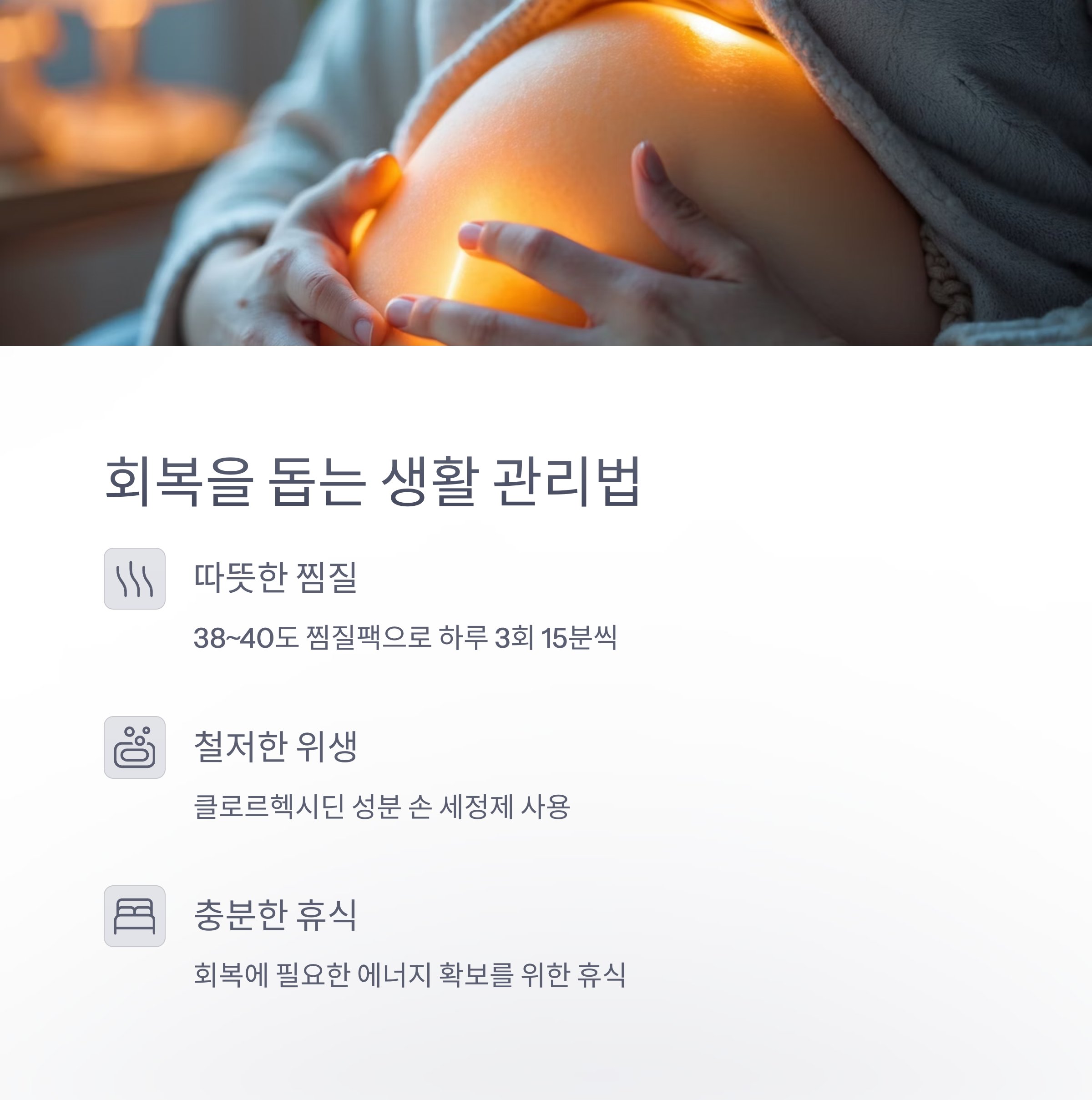 또한, 위생관리도 철저히 해야 하며, 화장실 사용 후에는 클로르헥시딘 성분이 포함된 손 세정제를 사용하는 것이 감염 재발을 줄이는 데 도움이 됩니다.