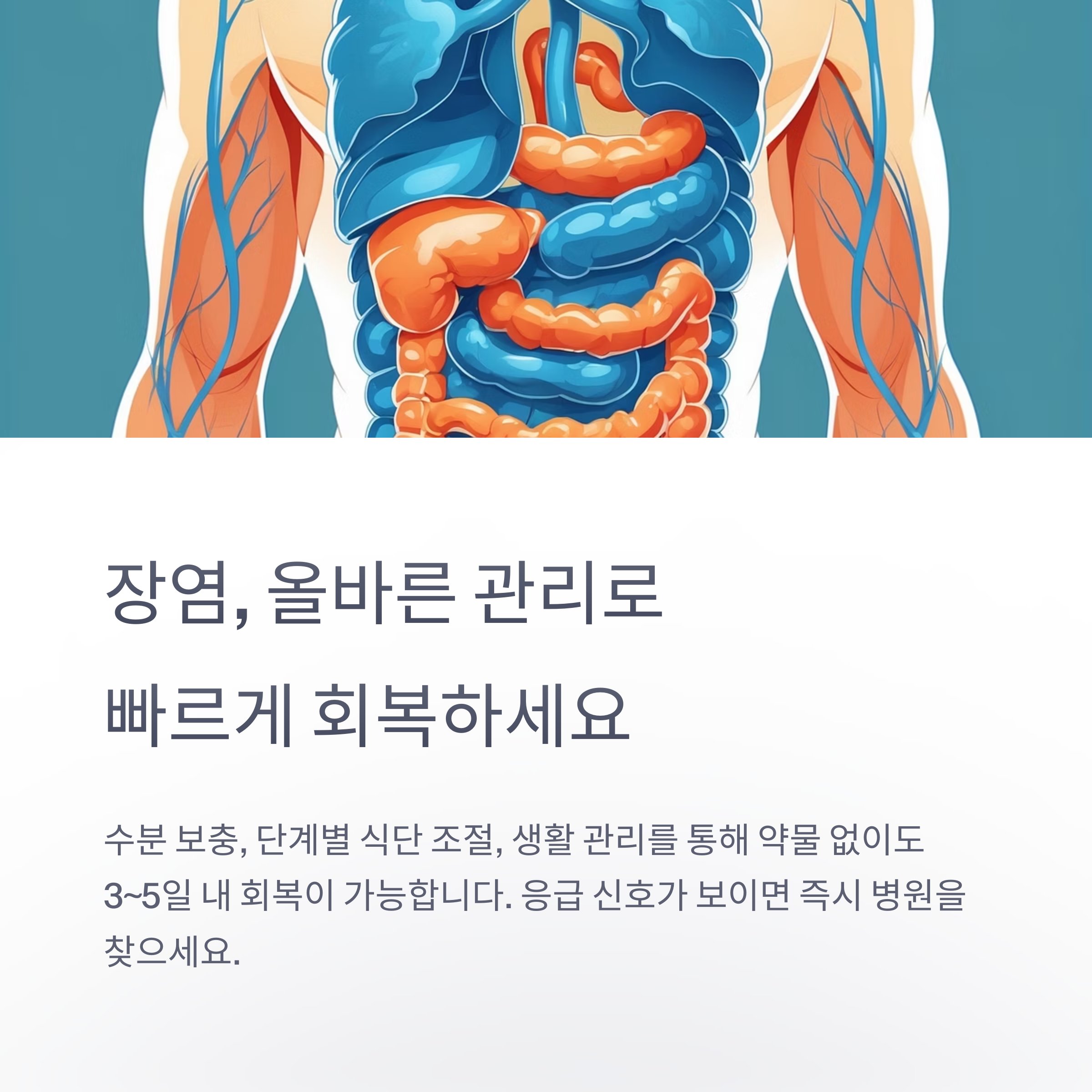 장염은 증상 자체보다 잘못된 대처가 회복을 늦추는 원인이 될 수 있습니다.