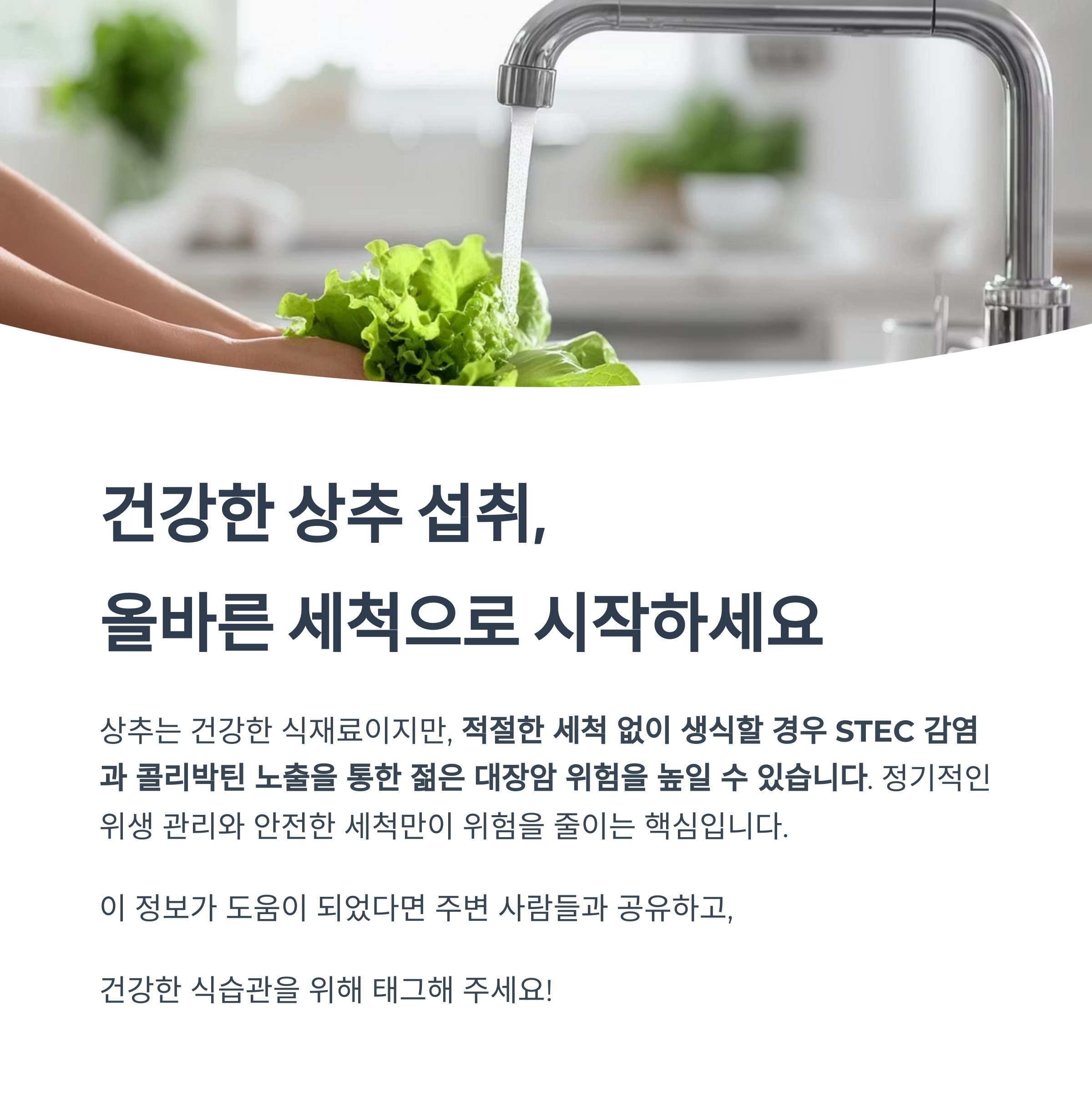 상추는 건강한 식재료이지만, 적절한 세척 없이 생식할 경우 STEC 감염과 콜리박틴