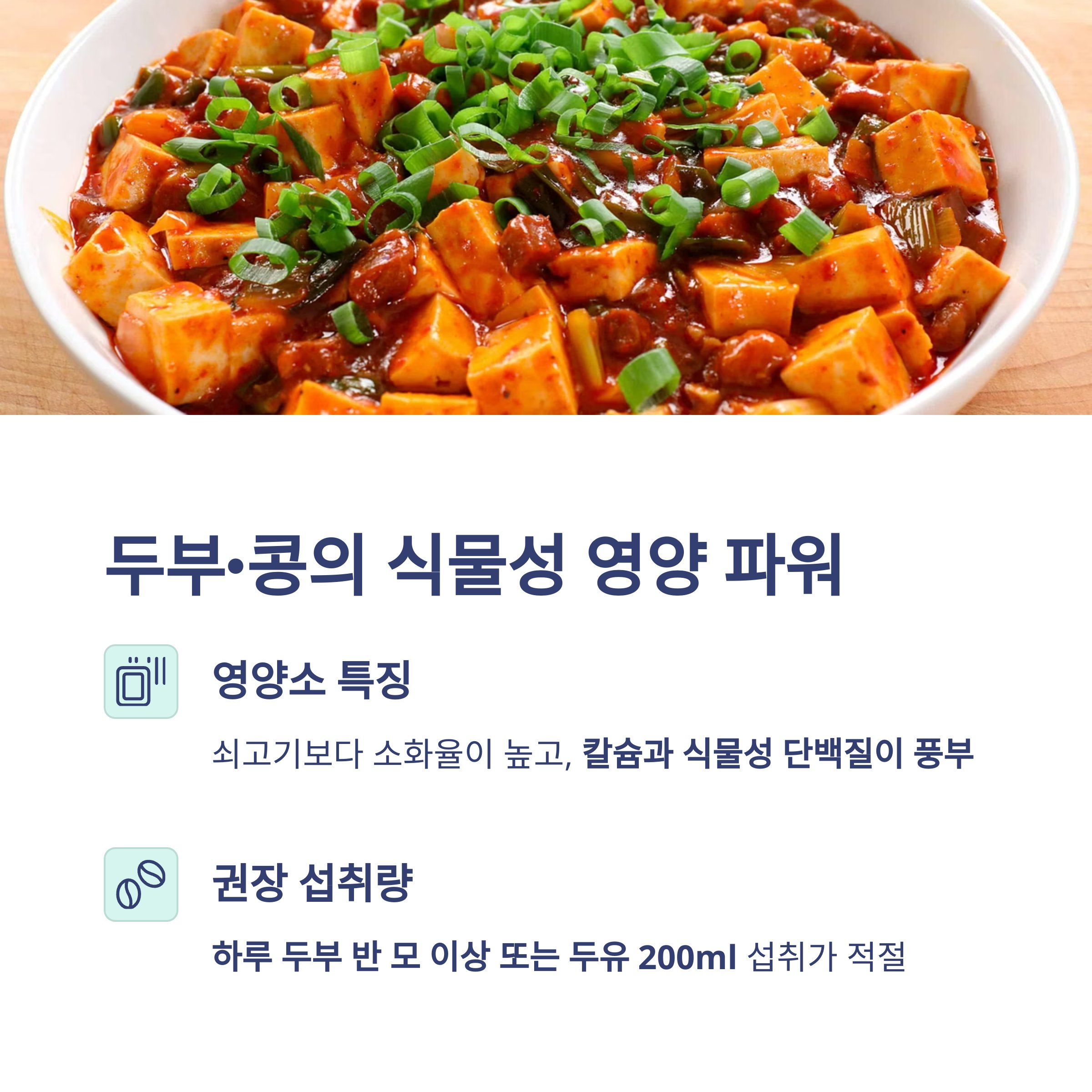 두부는 쇠고기보다 소화율이 높고, 칼슘과 식물성 단백질이 풍부합니다.