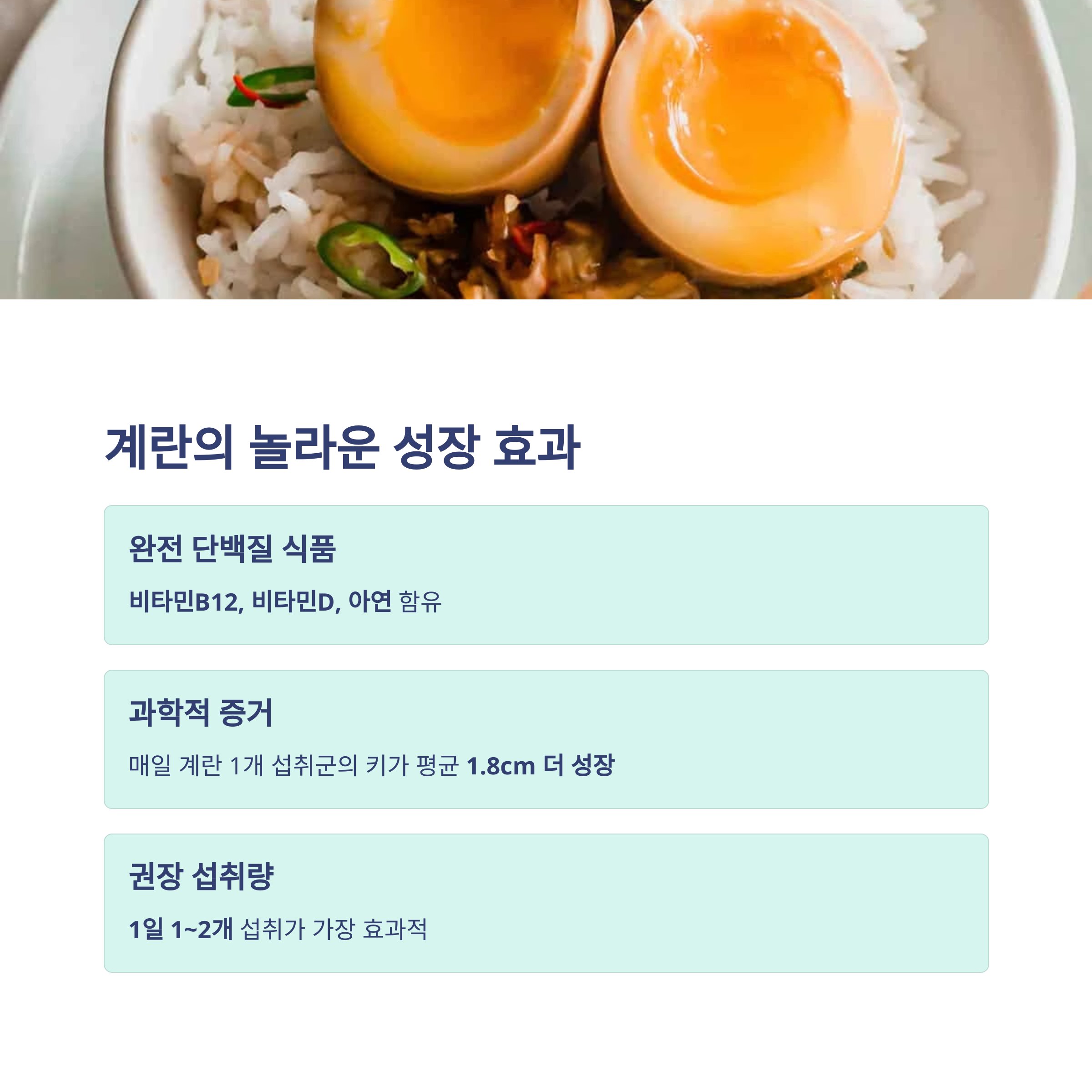 매일 계란 1개 섭취군의 키가 평균 1.8cm 더 자랐습니다.